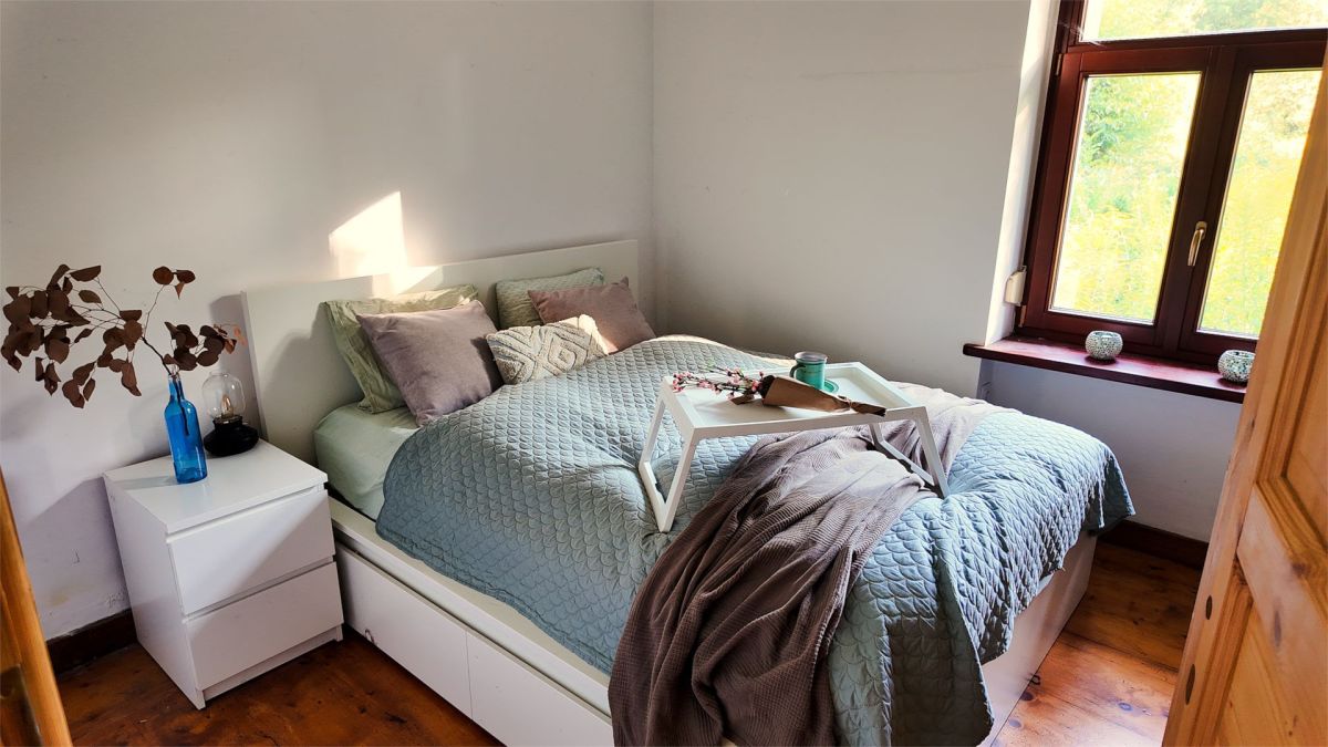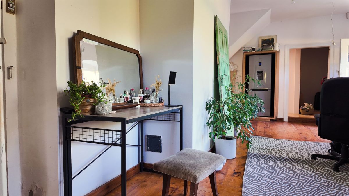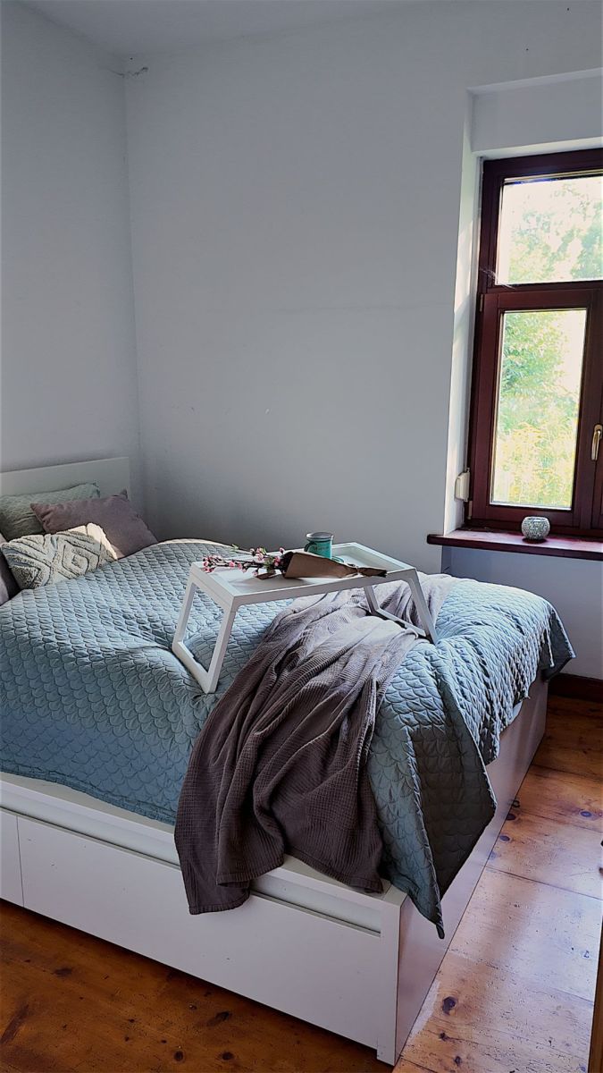 Mieszkanie składa się z 2 pokoi, kuchni ( pokój w chwili obecnej), łazienki oraz korytarza. Do mieszkania przynależy ogród.