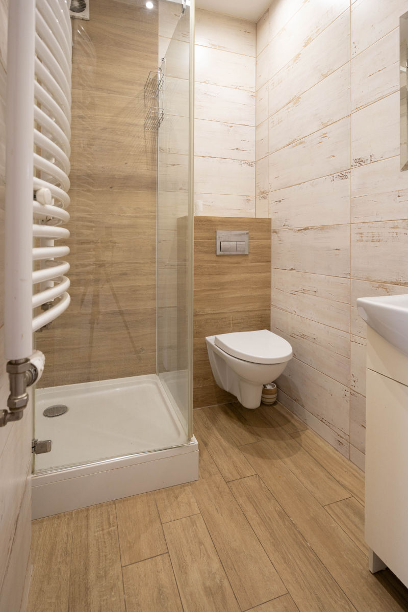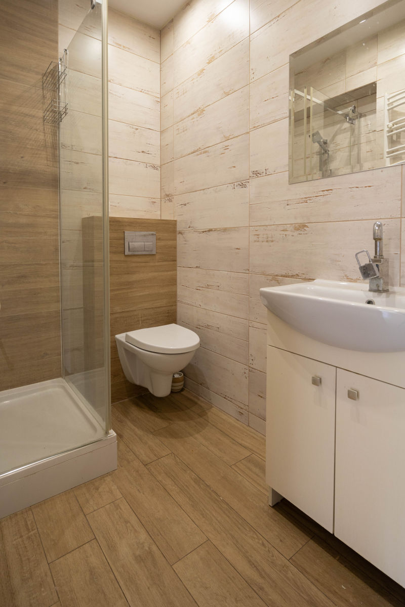 Łazienka po remoncie, okna PCV, ogrzewanie centralne ( piec na ekogroszek w piwnicy), w salonie dodatkowo jest kominek.