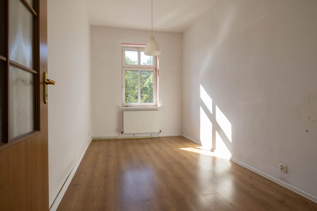 Lokal składa się z 3 pokoi ( 23m2, 23m2, 11m2), jasnej kuchni (7m2), łazienki oraz korytarza. Do lokalu przynależy też piwnica ( 7m2) oraz boks w budynku gospodarczym (3,9m2).